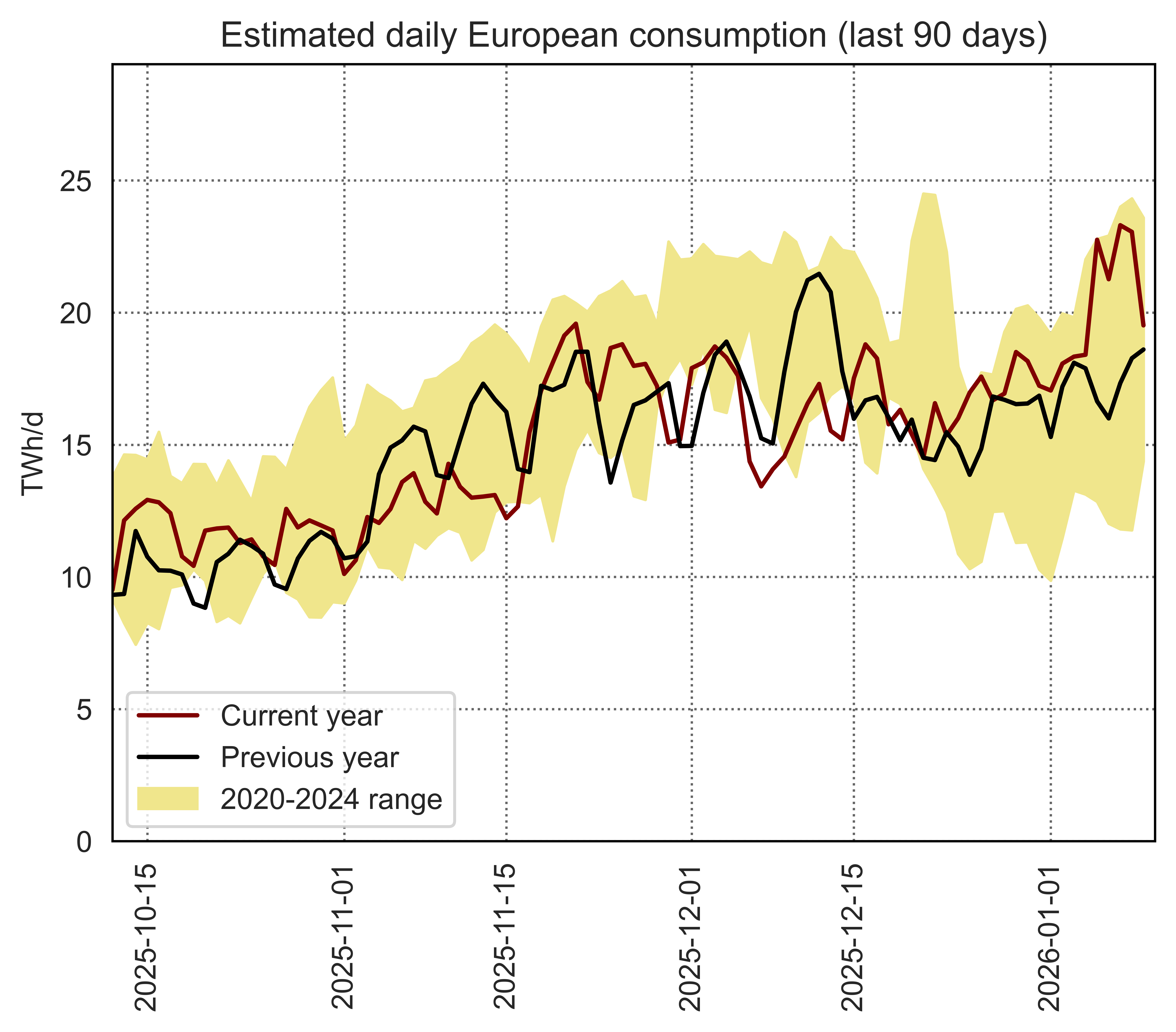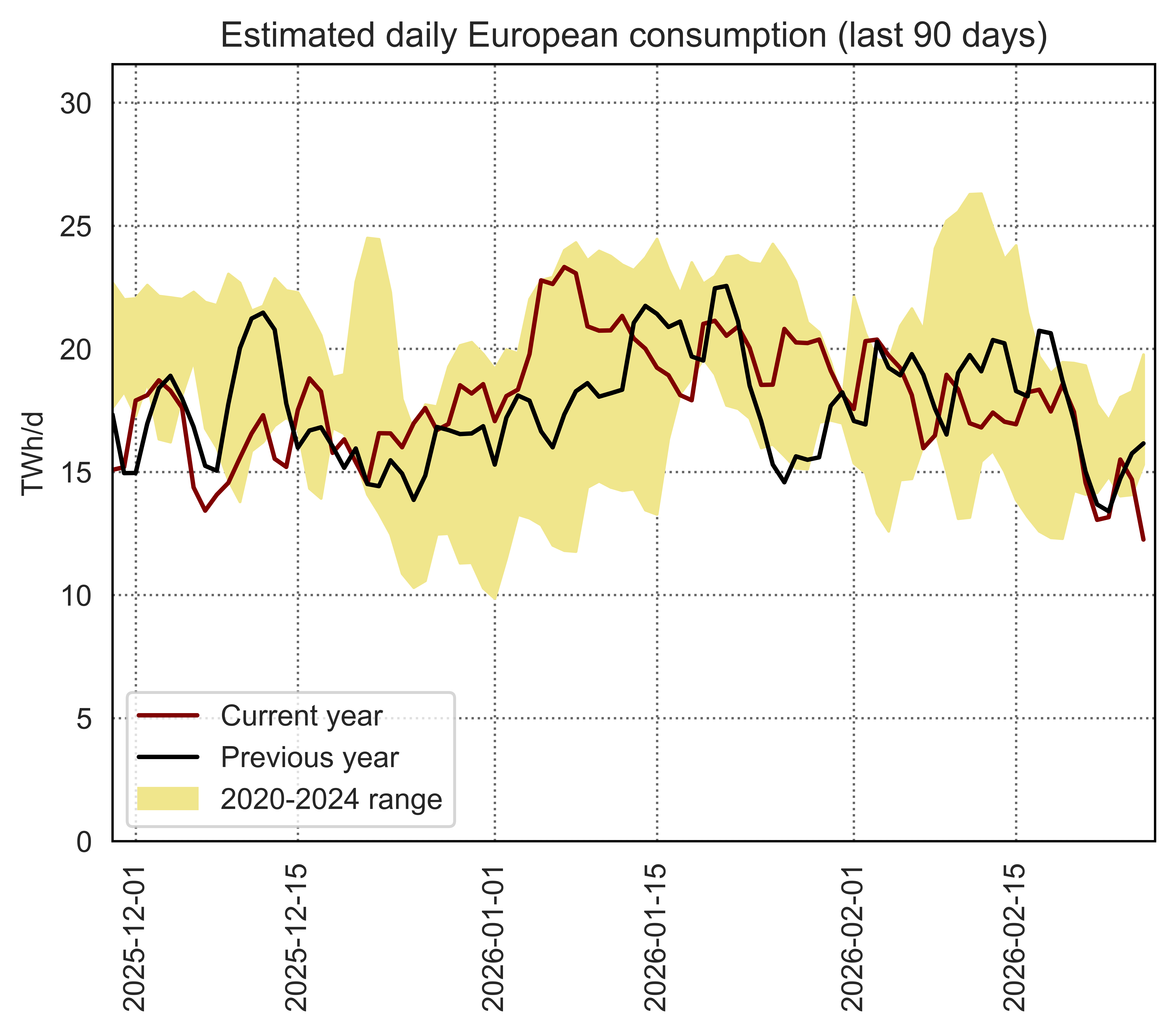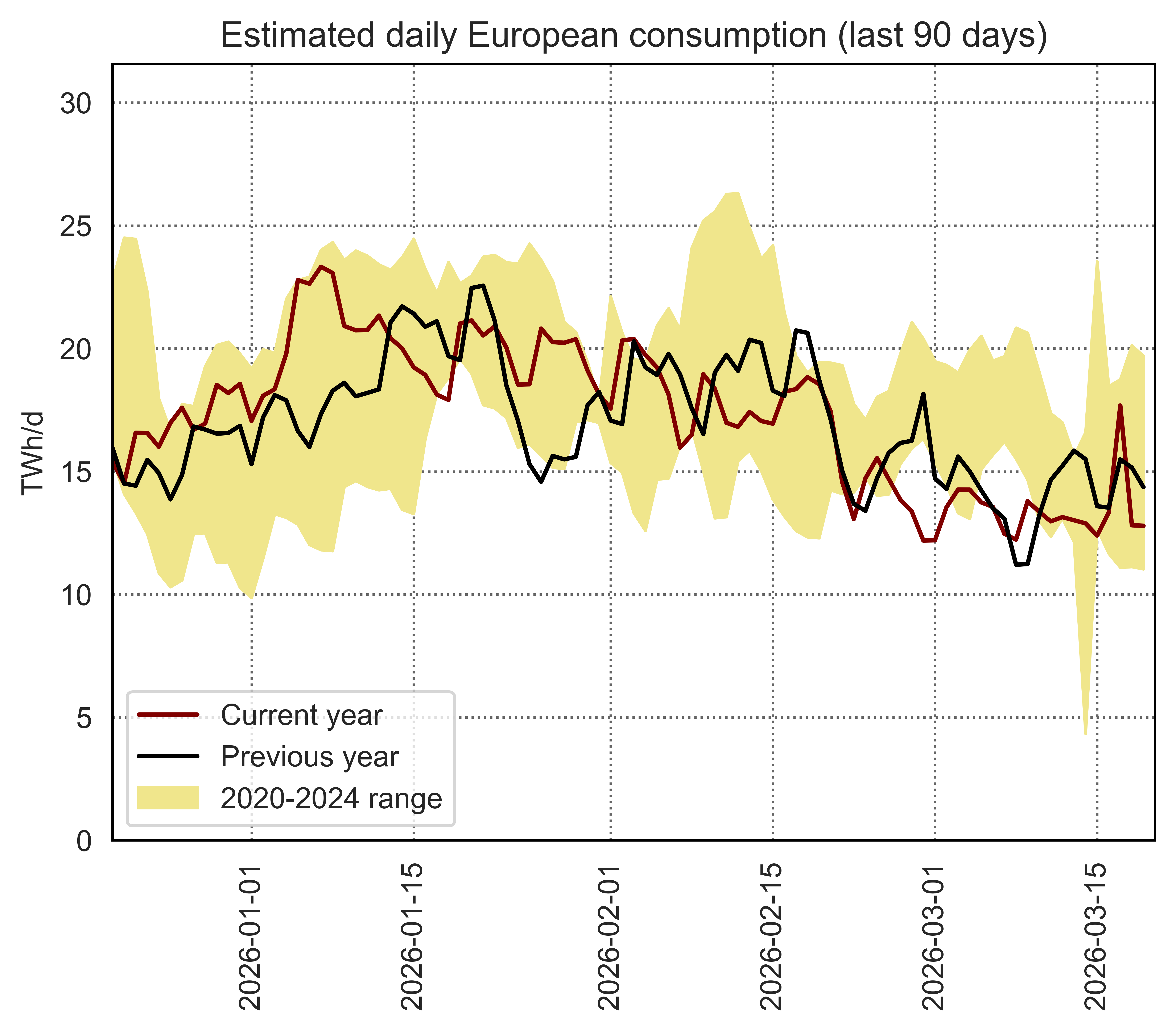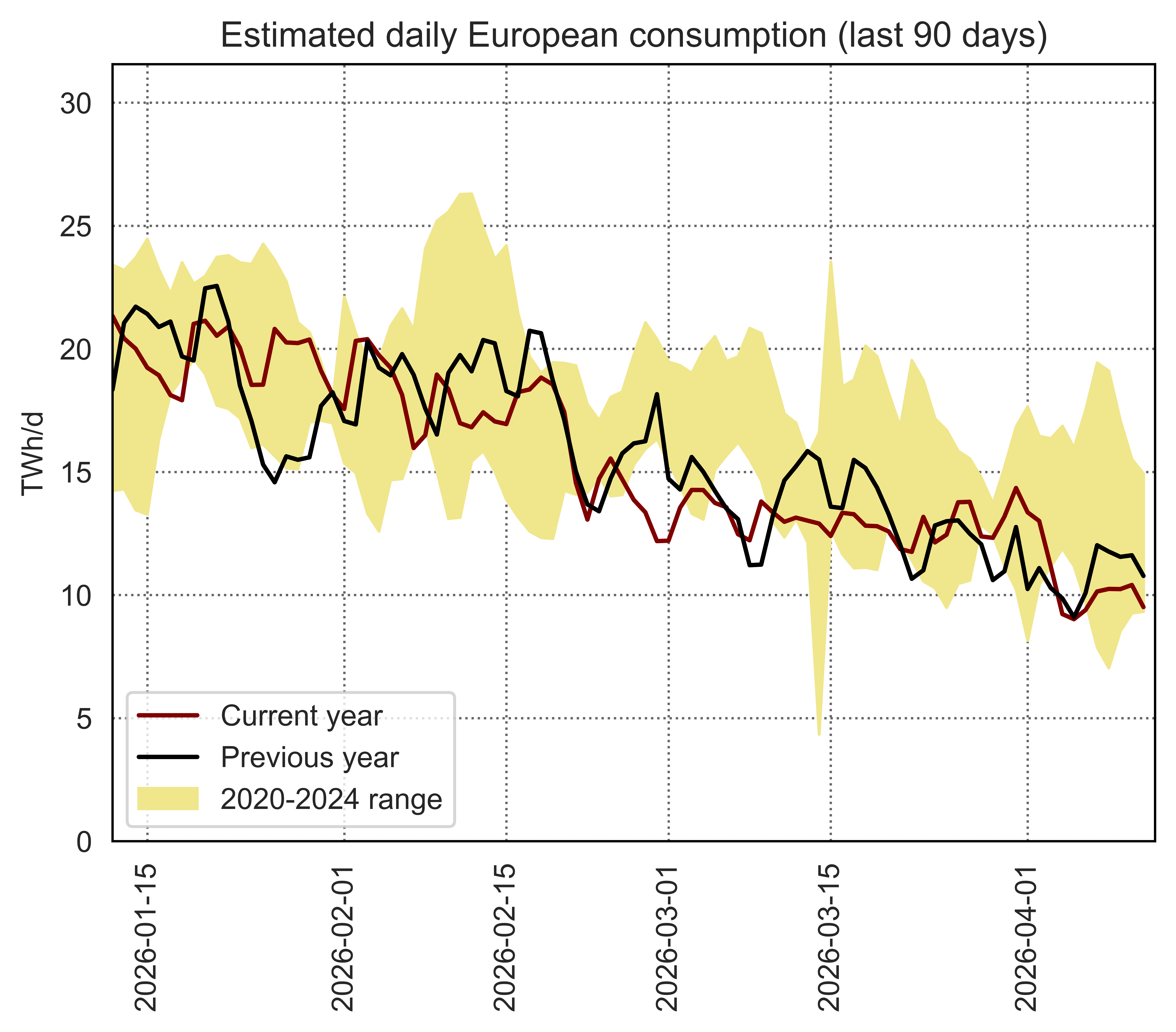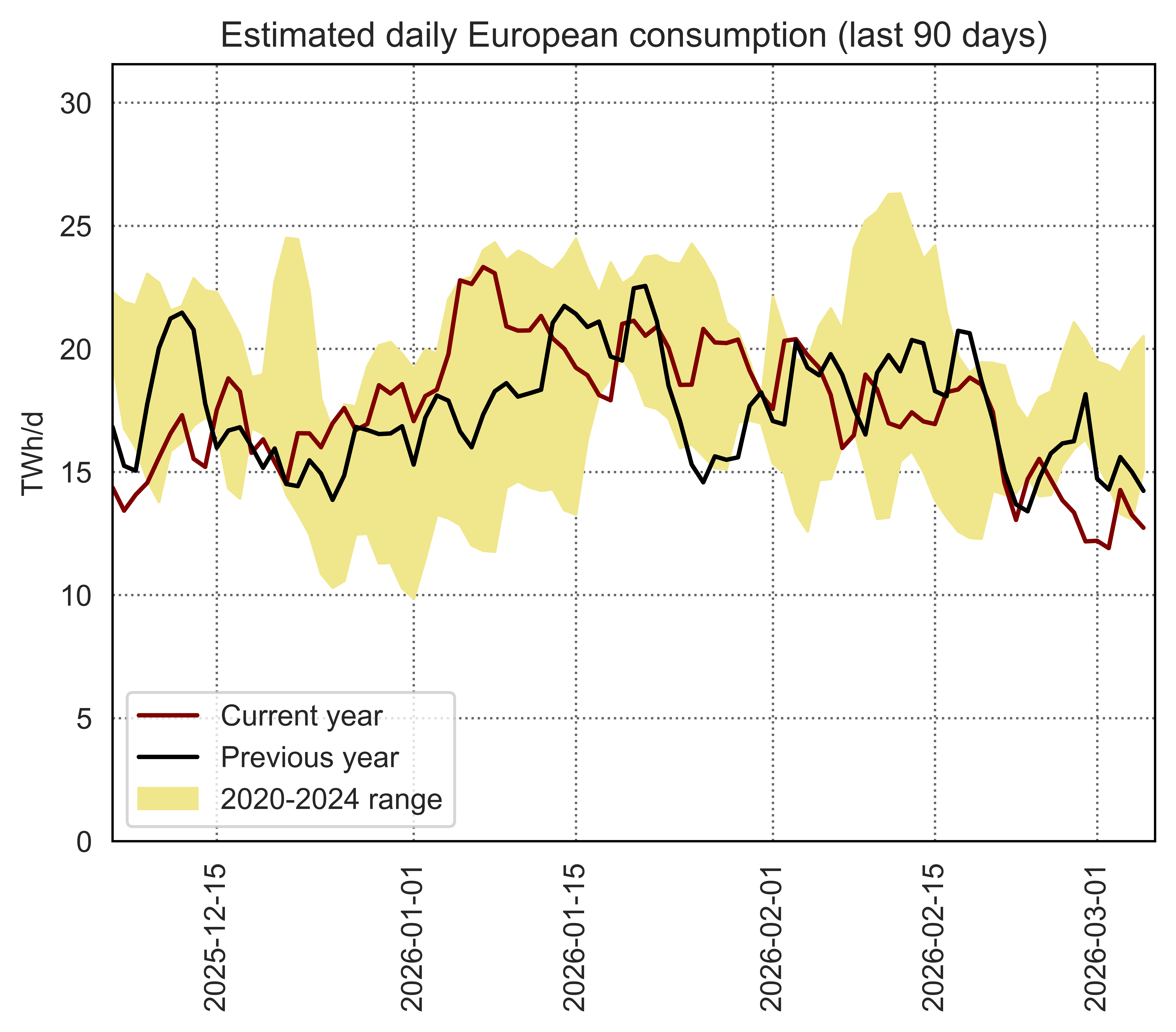 Estimated apparent consumption, calculated by summing all import flows and subtracting all export flows (including storage injections and withdrawals)