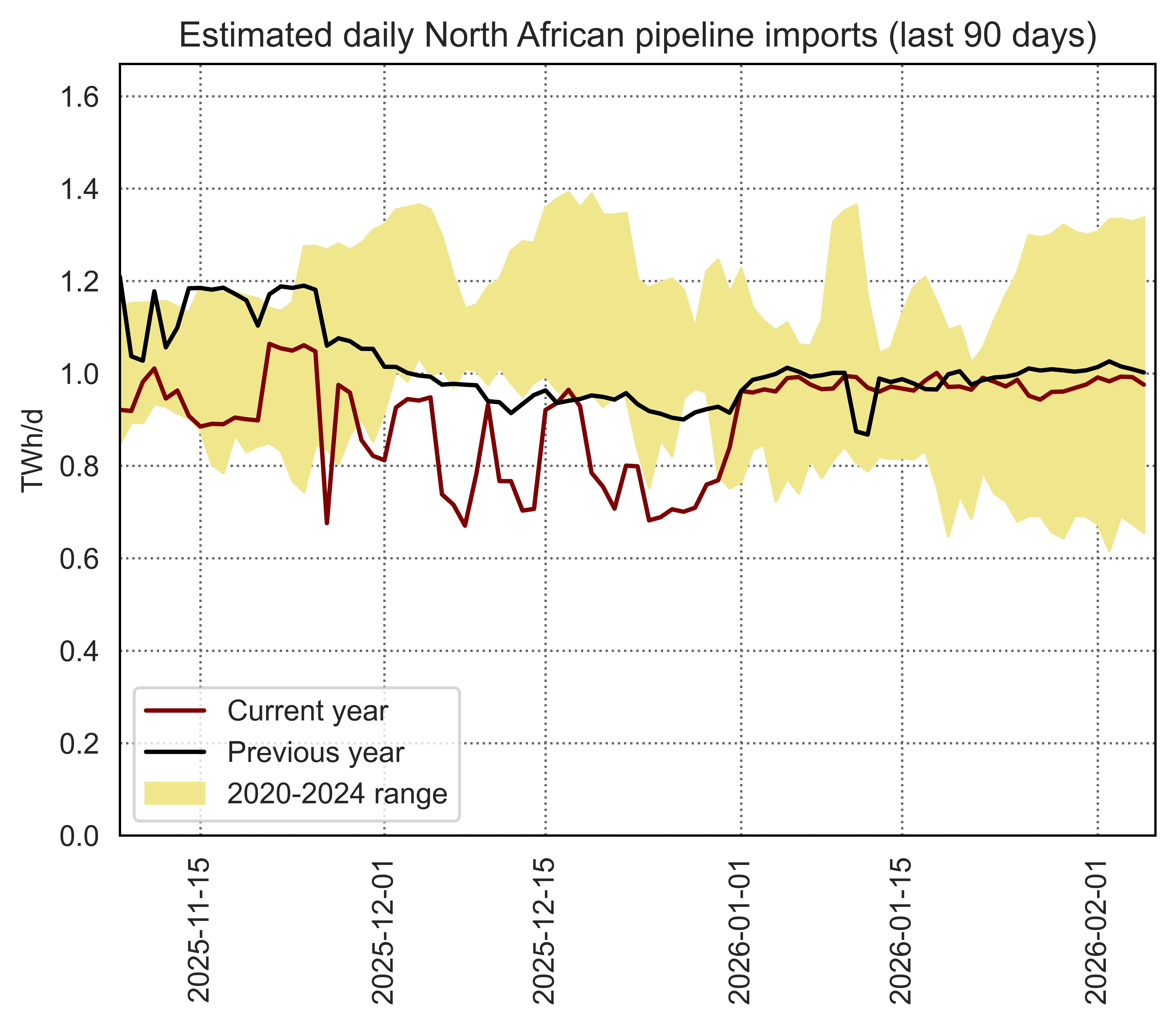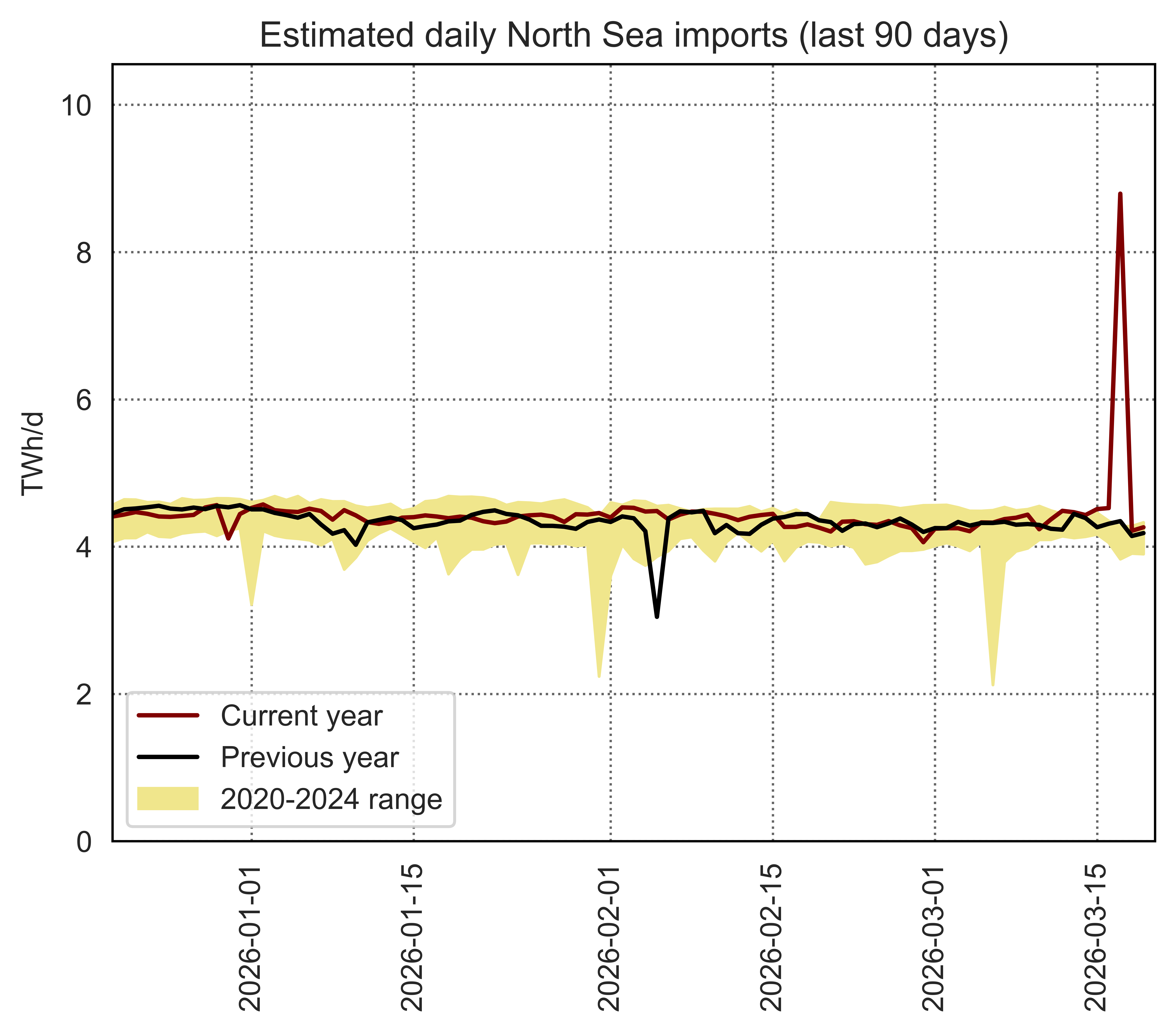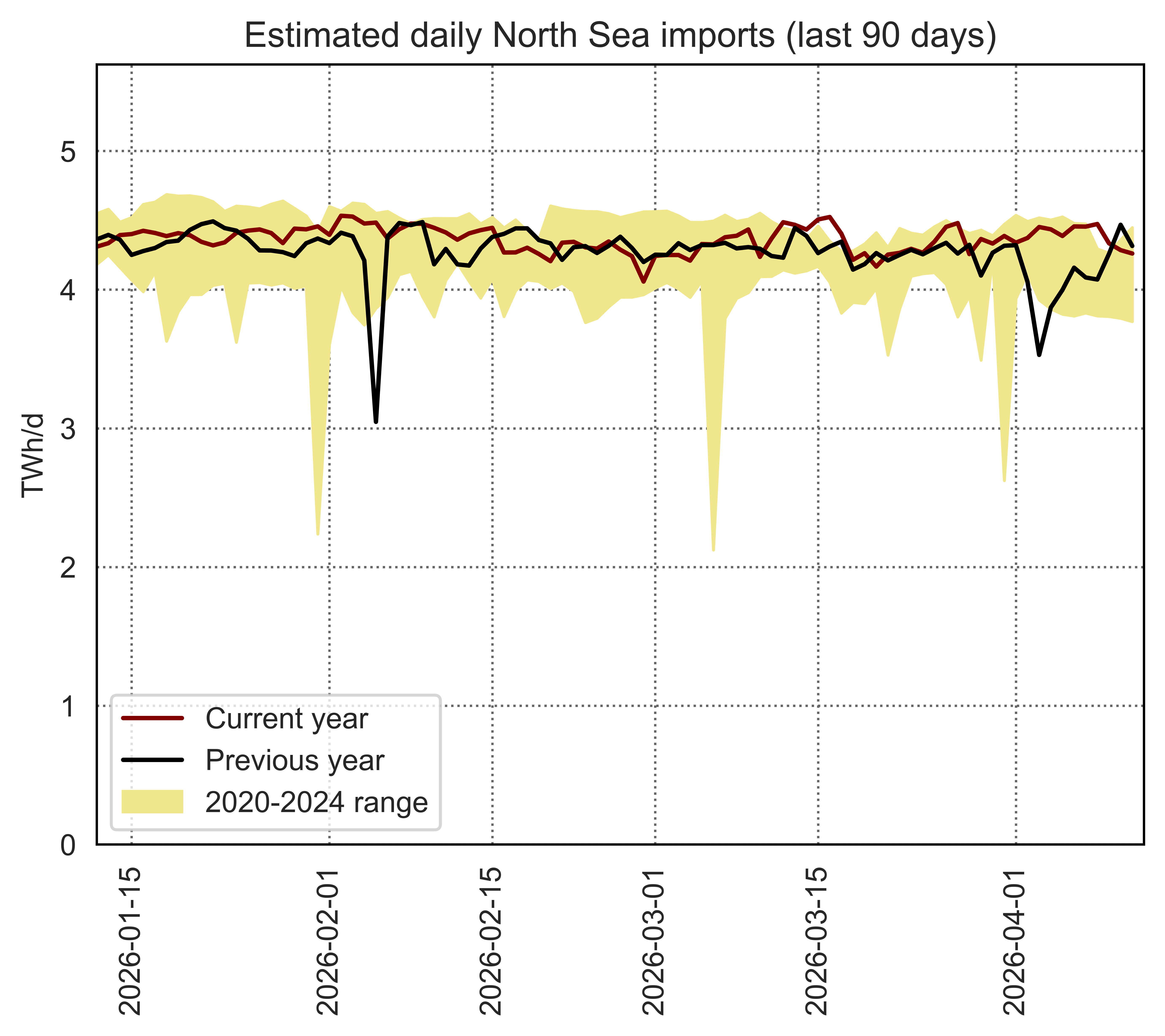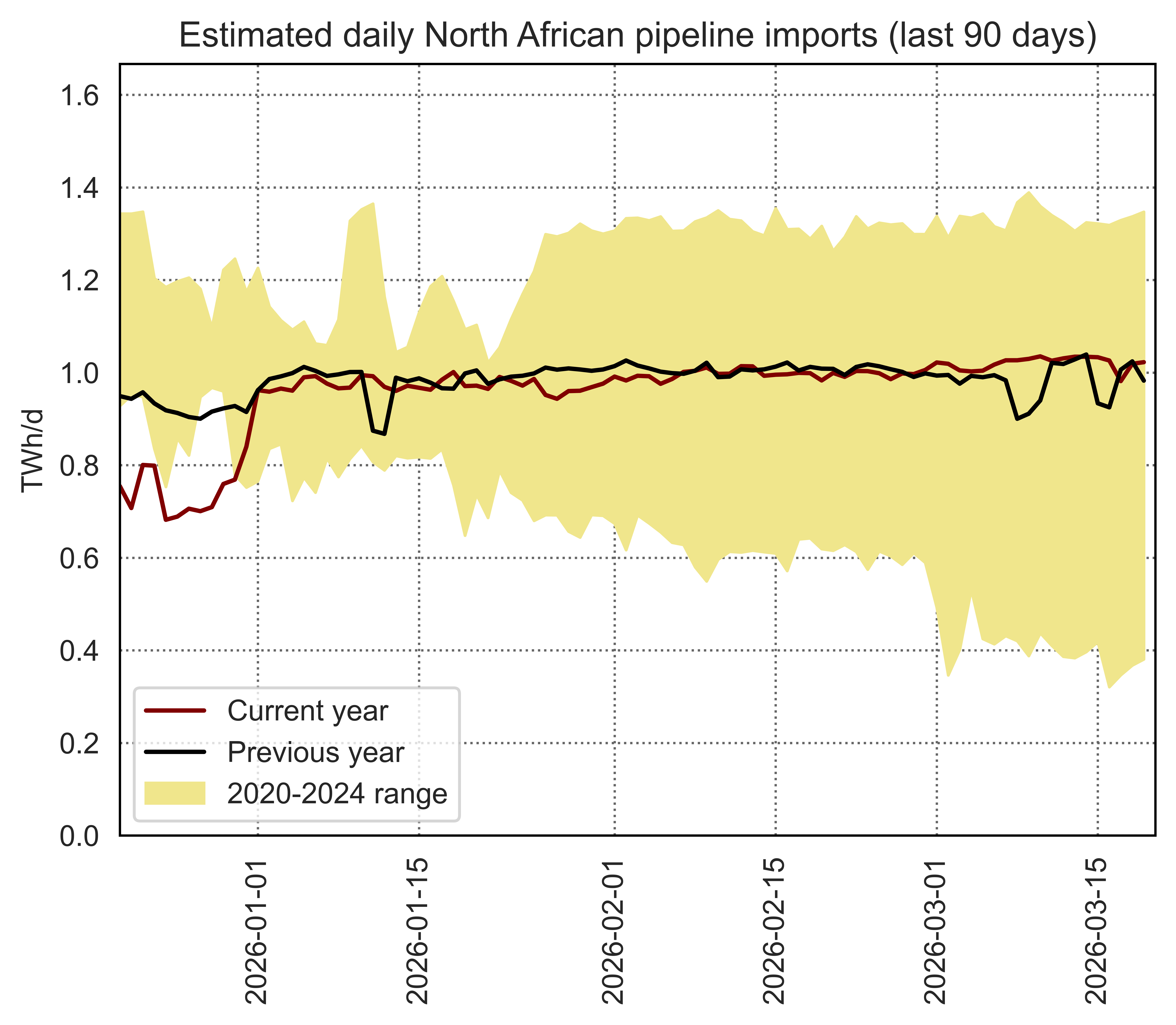 Estimated apparent consumption, calculated by summing all import flows and subtracting all export flows (including storage injections and withdrawals)