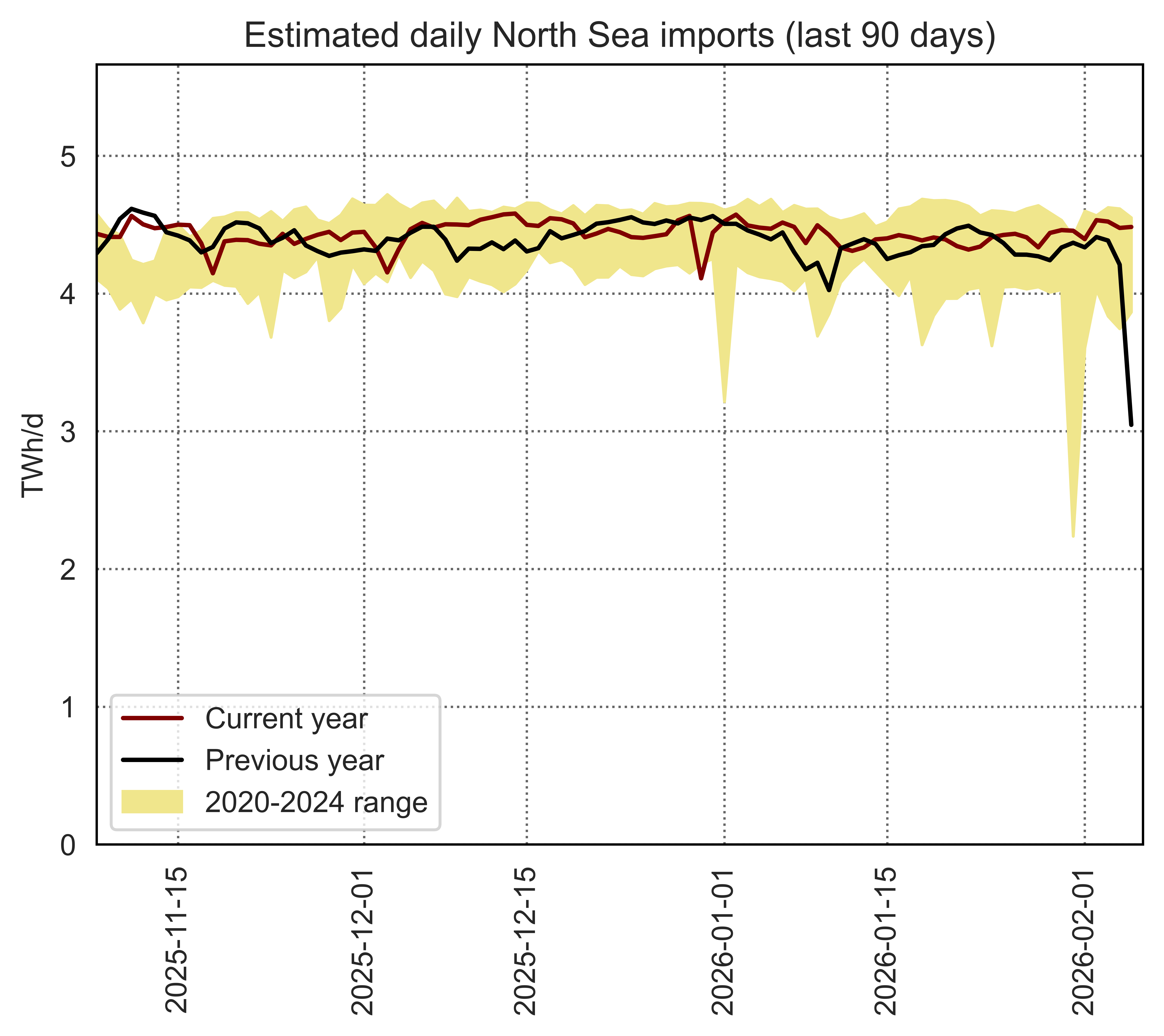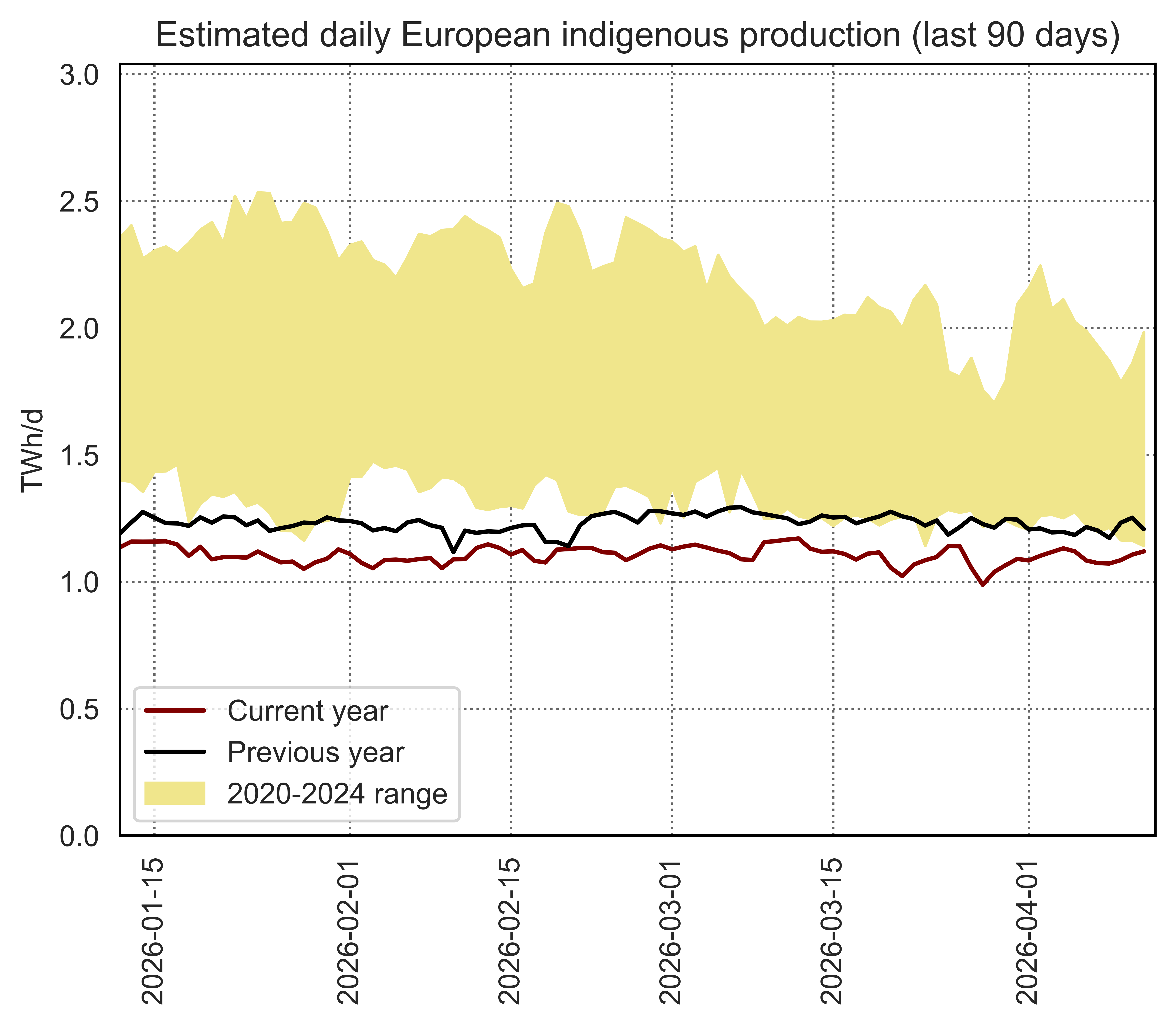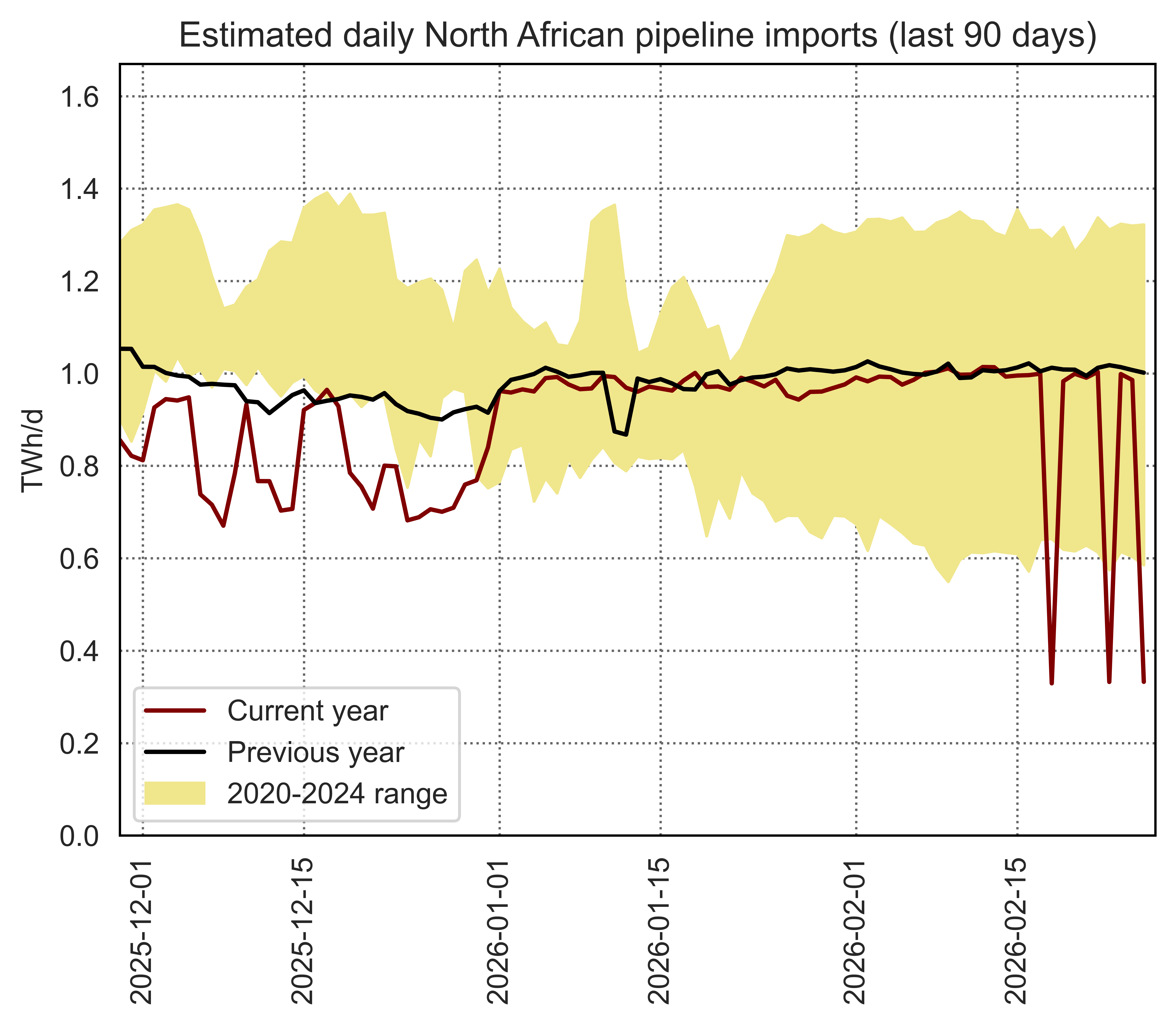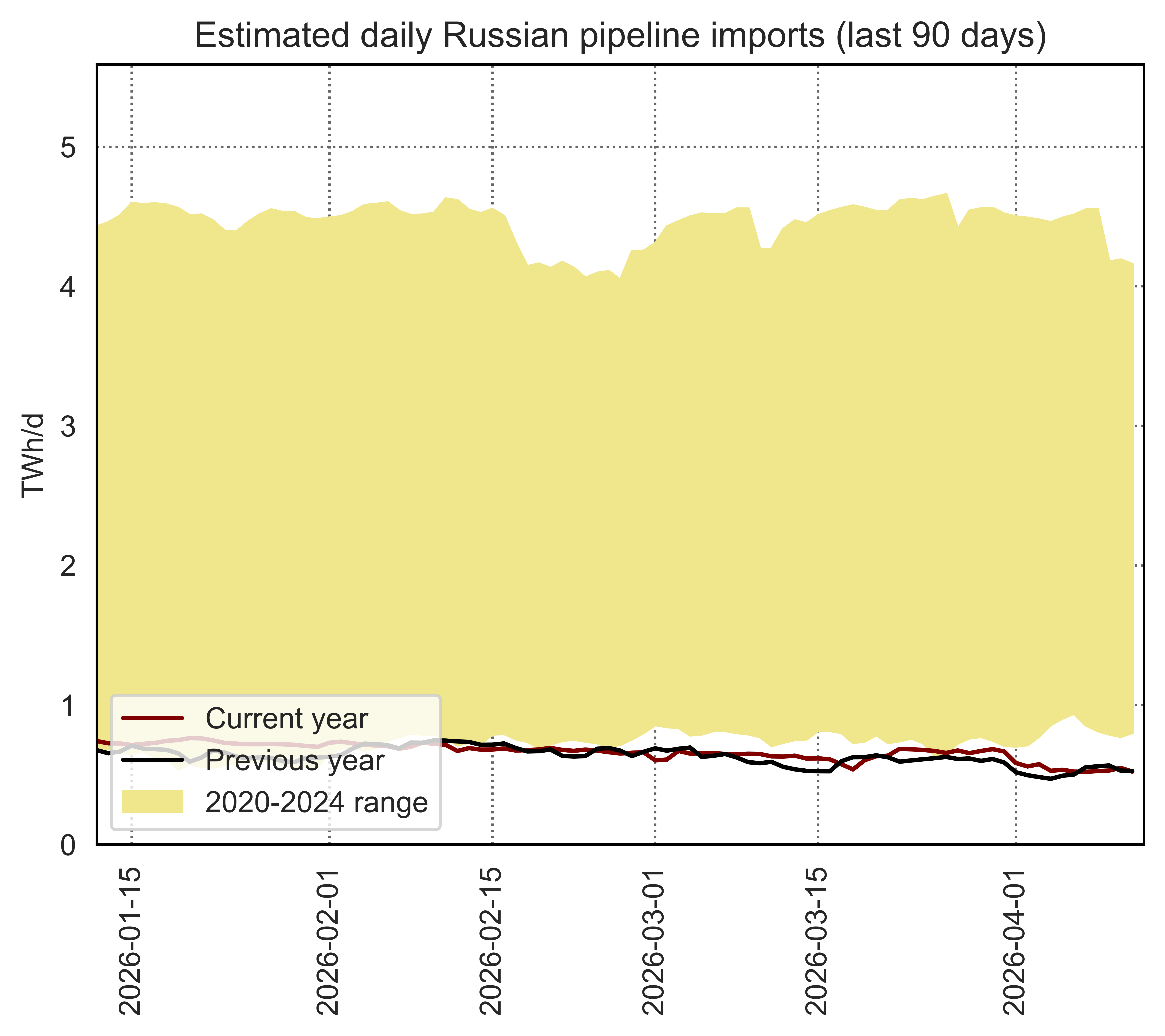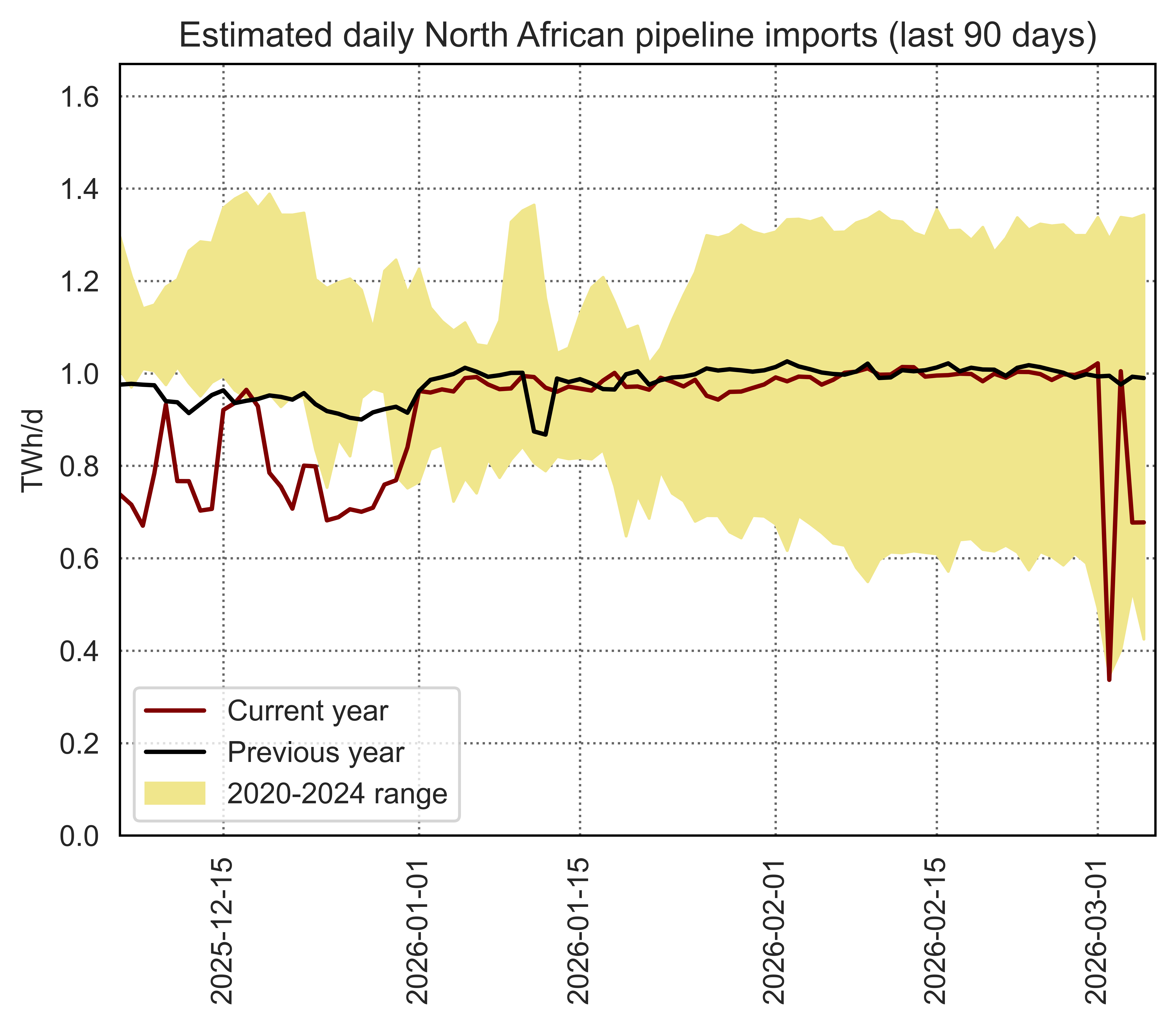 Estimated apparent consumption, calculated by summing all import flows and subtracting all export flows (including storage injections and withdrawals)