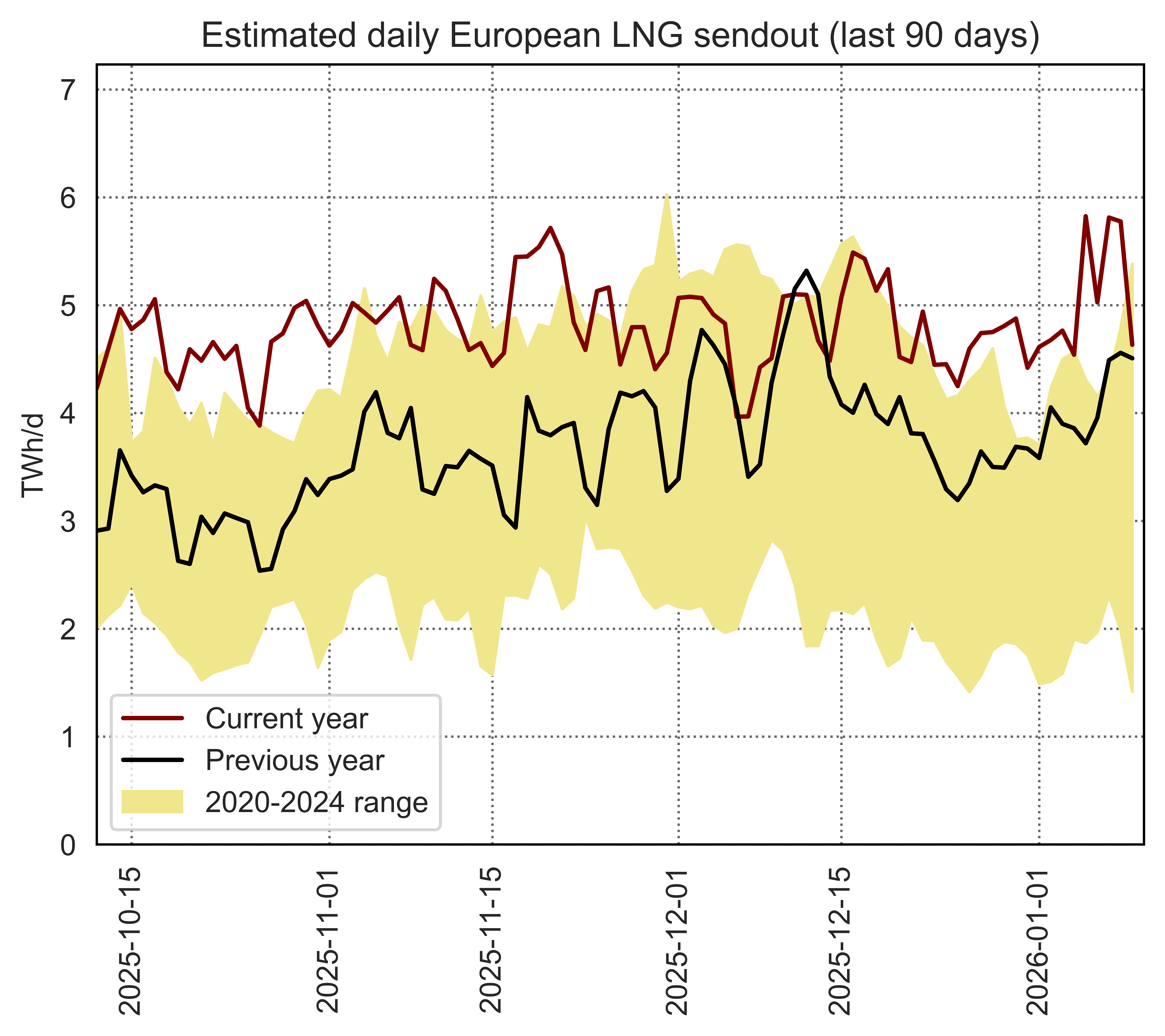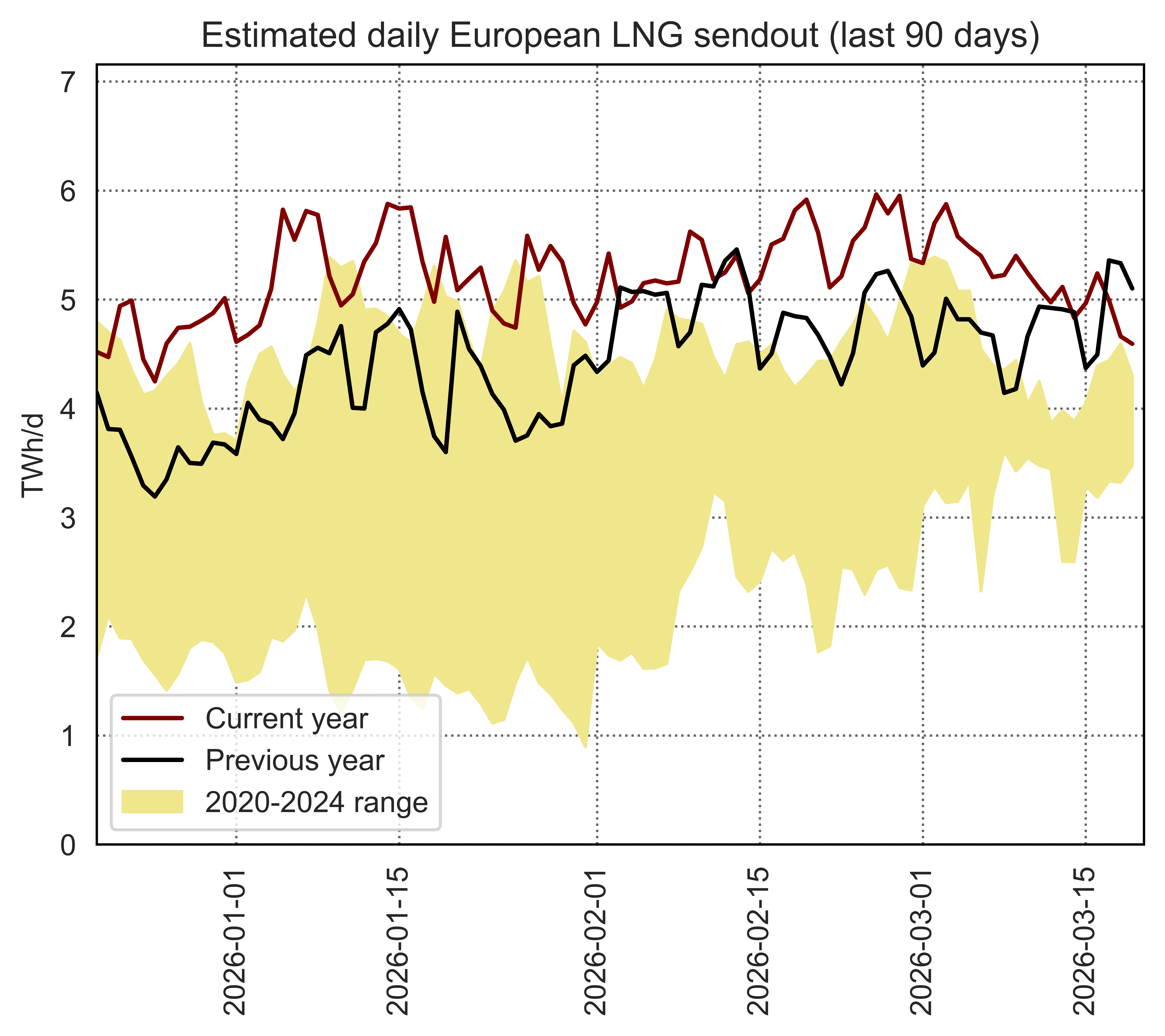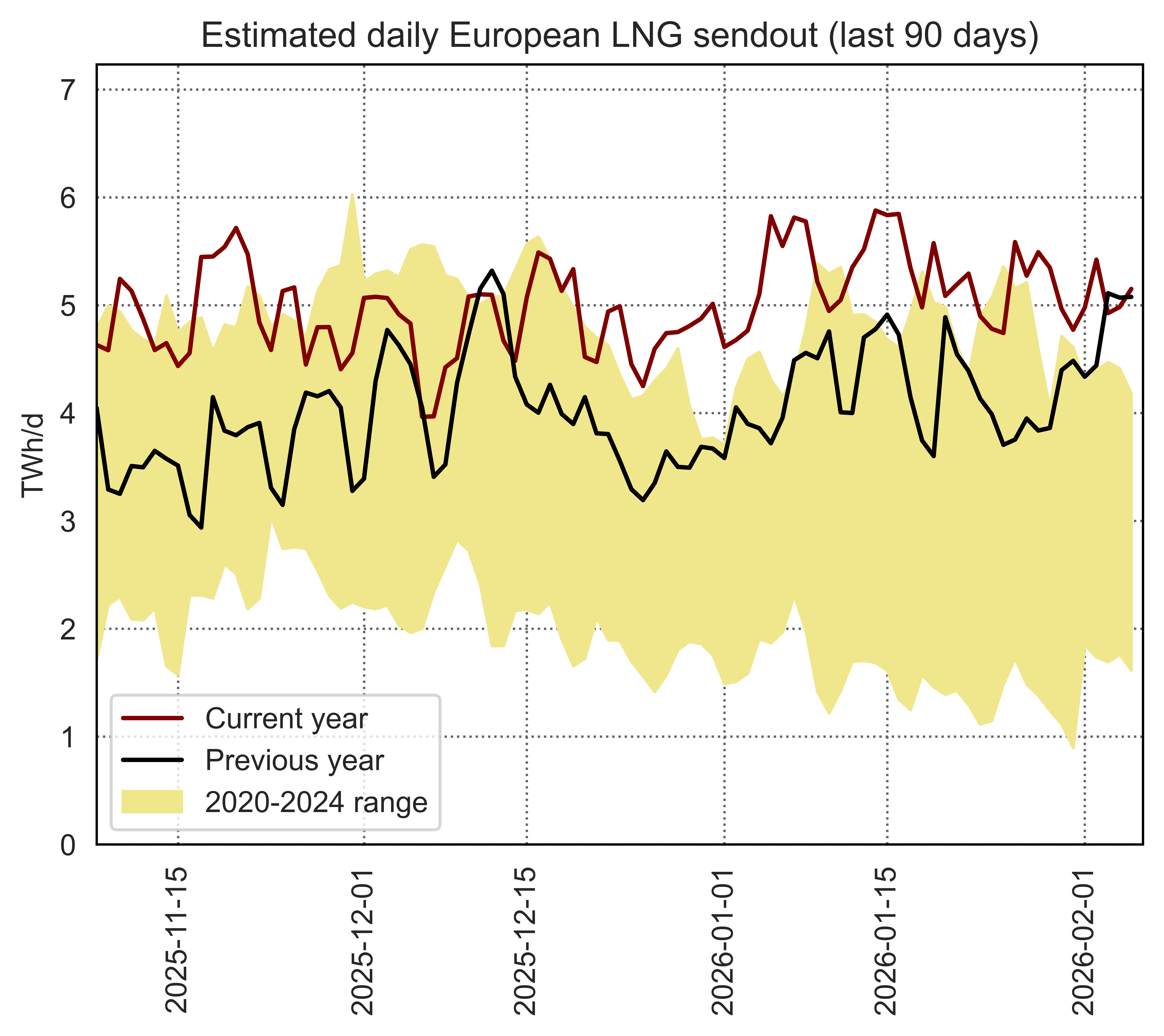 This page shows data on the utilisation of individual European LNG terminals compared to their regasification capacity and historical utilisation patterns.