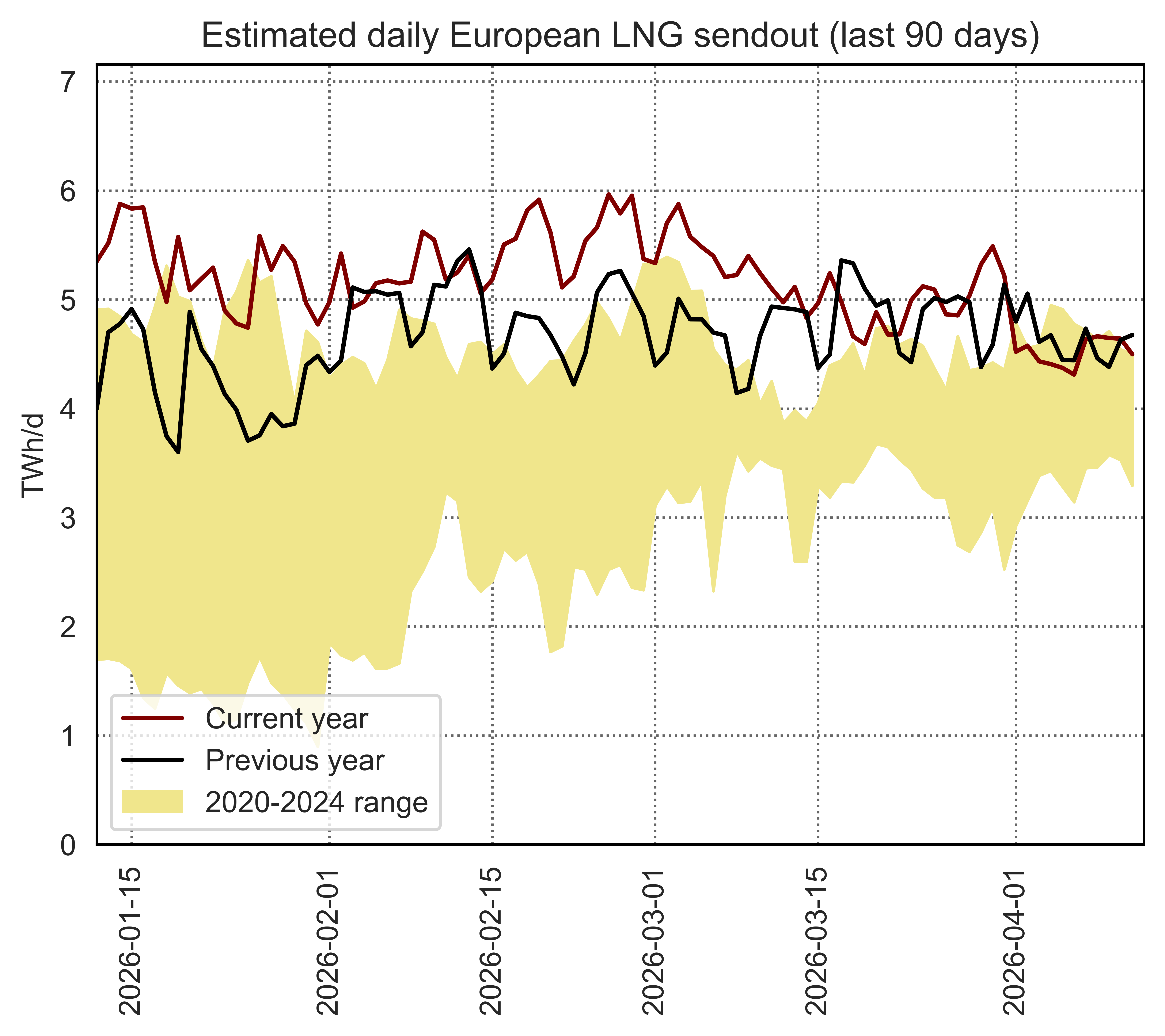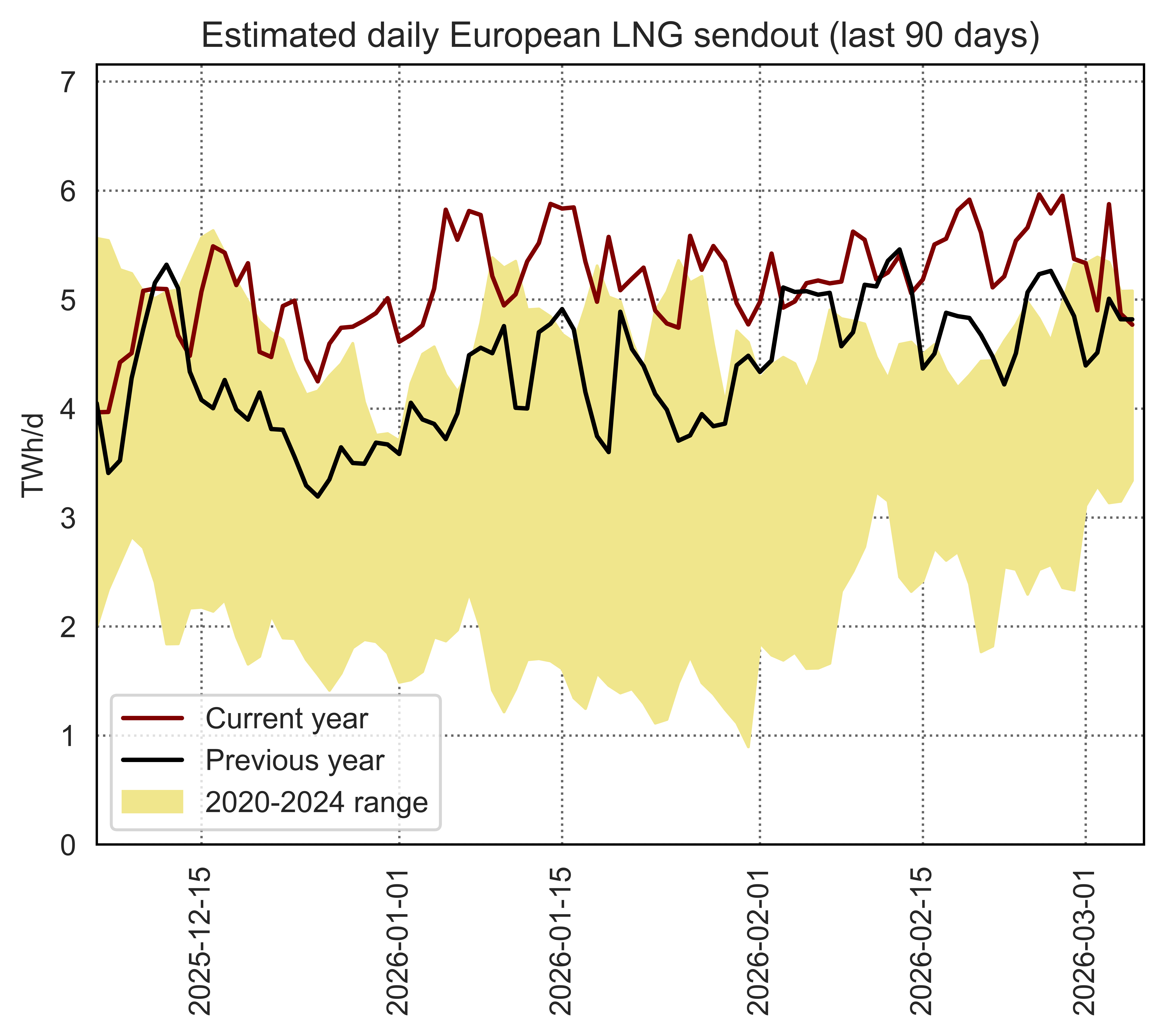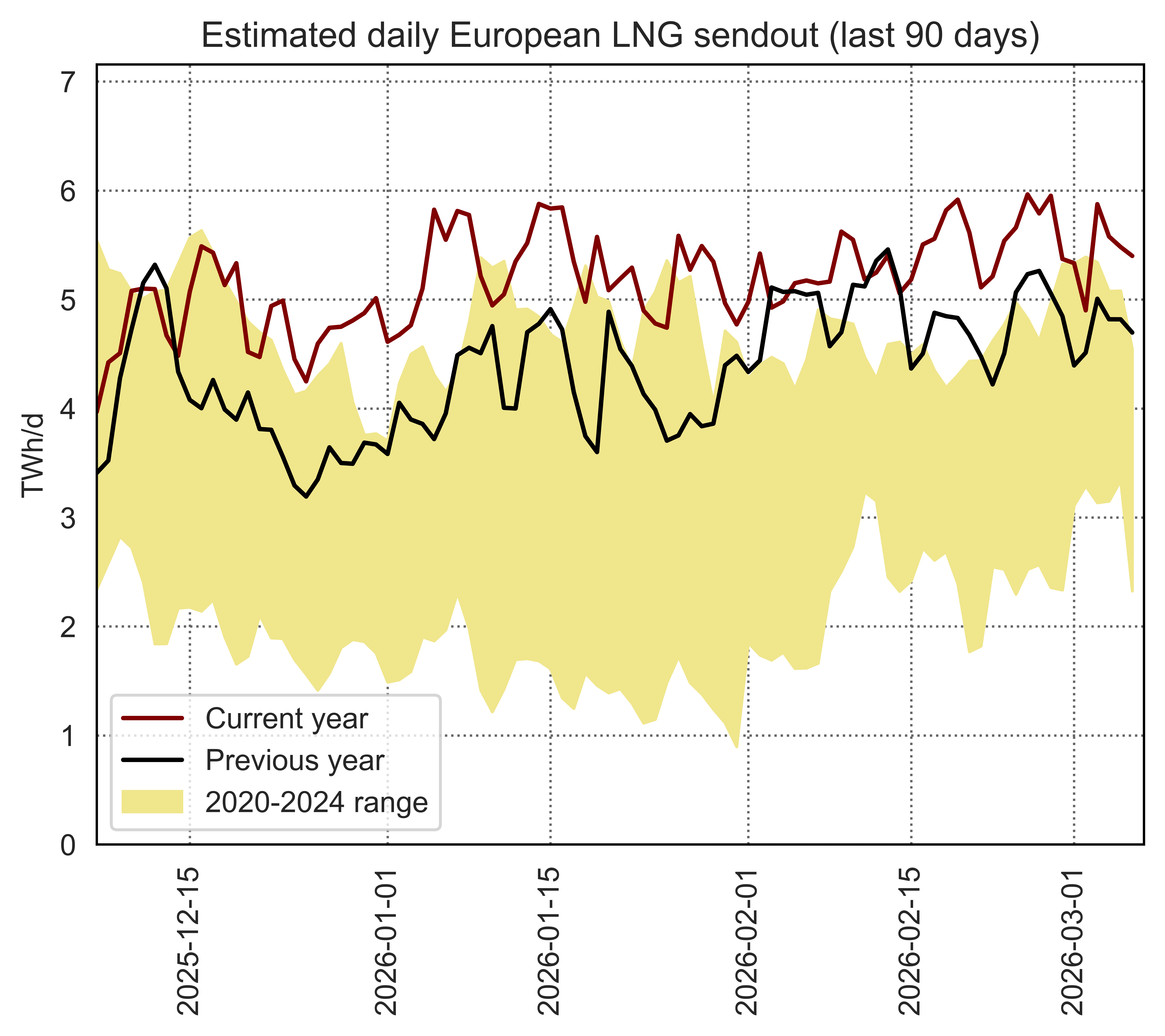 This page shows data on the utilisation of individual European LNG terminals compared to their regasification capacity and historical utilisation patterns.